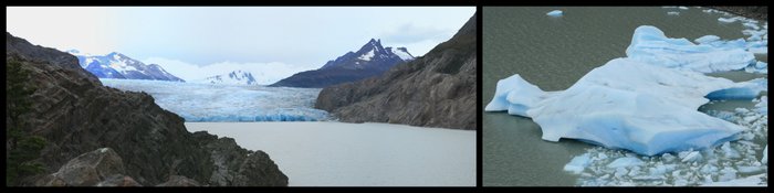 Le glacier Grey et ses icebergs.