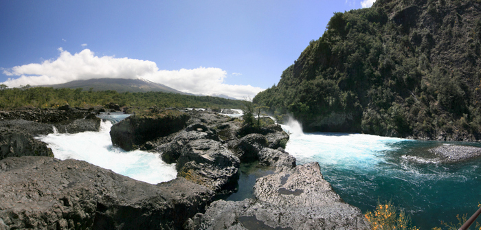 Les chutes du Niagara du Chili… Elles ne sont sûrement pas aussi gigantesques mais elles ont leur intérêt avec une eau turquoise et une vue magnifique sur le volcan Osorno.